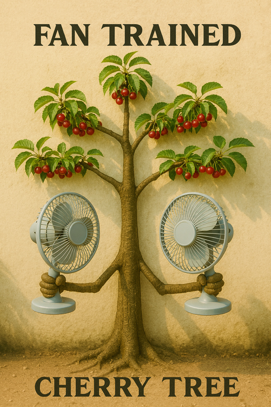That doesn’t mean northern growers should give up on sweet cherries altogether. There are practical ways to tilt the odds in your favour. Training a tree as a fan against a sunny, south-facing wall captures extra heat and protects blossom from wind[10]. We mean fan shaped not teaching your tree to move air around.