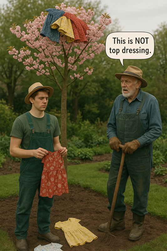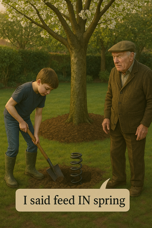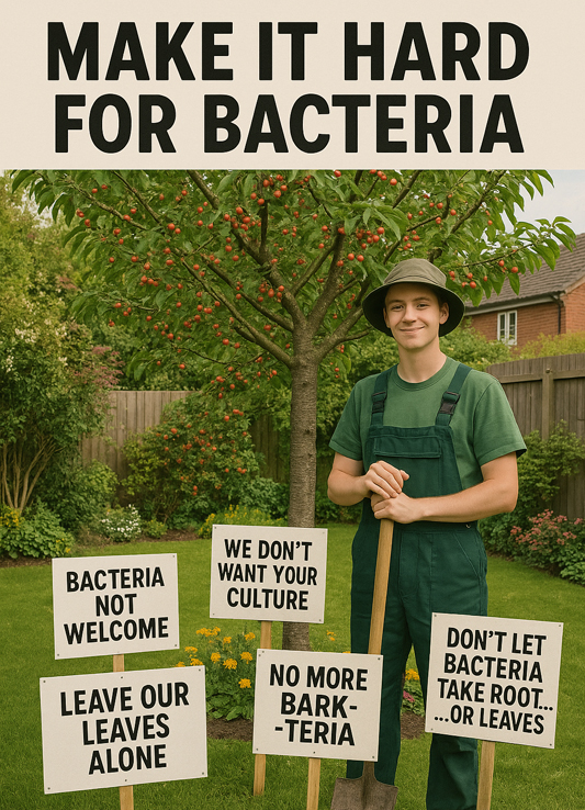 Cherry trees are like people, not in the way we can get fruity, throw shade, and creak when old but a mixture of two things coming together. Some people might call them “Frankenstrees,” but the industry calls them grafted. This is where you join or graft the roots of one tree onto a piece of another. The idea is to merge the benefits the roots offer with the benefits the fruiting part has to offer. A bit like merging capitalism with socialism — more benefits all round. The rootstock is the root system plus a small section of stem taken from another tree. It provides qualities such as strength, size control, soil adaptability, and disease resistance. Onto this, the scion is grafted — not Cylon, because we want cherries, not human-killing robots. The scion is the part that grows into the fruit-bearing section. You can usually spot the graft union as a slight bulge about 30 cm above ground. Everything above it is the scion, responsible for flavour, sweetness, and yield[26][27].