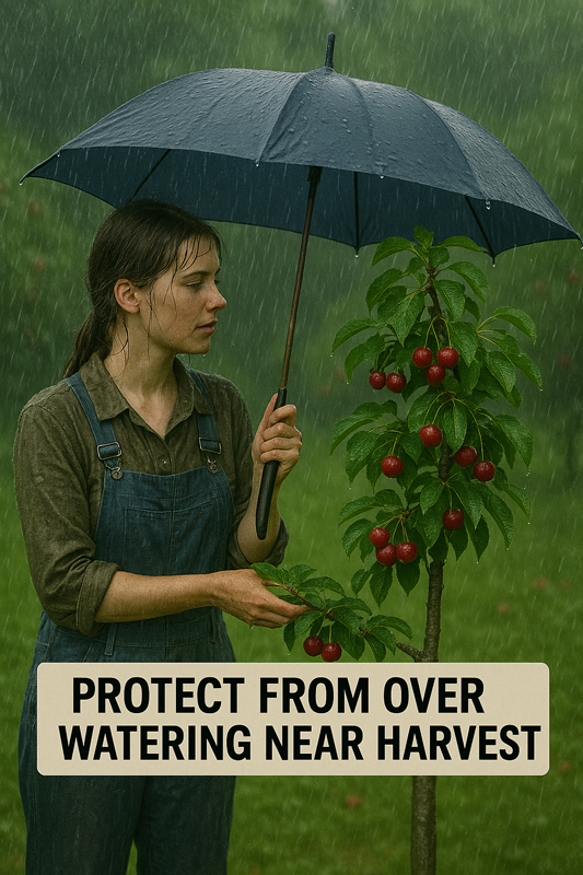 Growing under a polytunnel, greenhouse, or rain shelter prevents excess moisture that leads to splitting and also warms the microclimate[11]. Choosing later-flowering, self-fertile cultivars such as ‘Stella’ or ‘Lapins’ helps avoid frost damage to blossom in cooler springs[12]. Consistent watering during dry spells, combined with good mulching, reduces stress and helps fruit ripen more evenly[3].