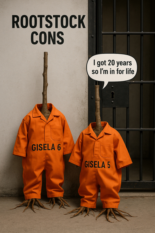 This is how you can get one Stella tree to grow to 3m while another grows to 6m. Still the same tree, just grafted onto different rootstock.