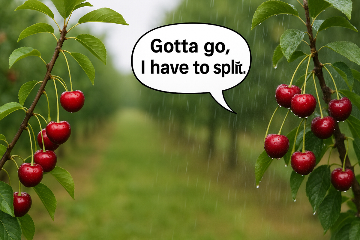 Wet spells at ripening = higher risk of fruit splitting and softer cherries.